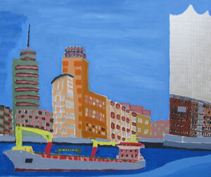 2020Painting made of Hamburg inspired by a visit to hamburg in 2018. It shows a part of hamburg hafen and the Elbphilharmonie.