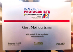 Ik heb een paginavermelding gekregen in de catalogus van The New Protagonists of Contemporary Art 2025 welke is uitgegeven ter ere van bovengenoemde award welke mij is uitgereikt op 11 september in het auditorium van Saint-Paul de Vence.